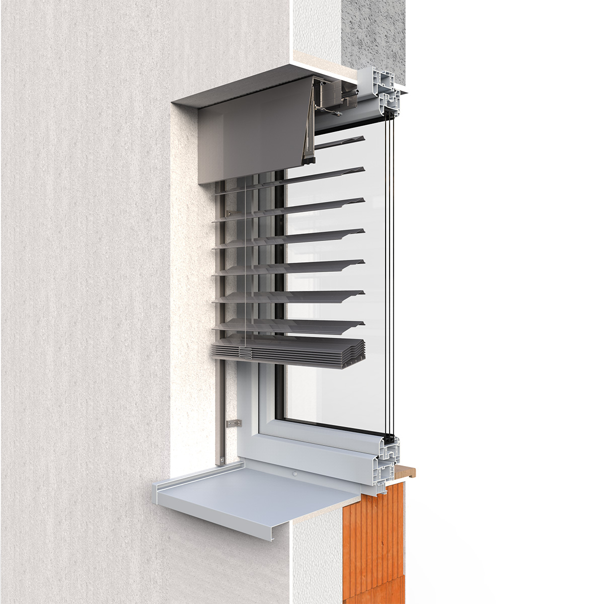 Podfasadna kutija potrebne širine se postavlja direktno na zid, izravnava se izolacionim pločama i malteriše. Ovo skriva i paket lamela i vratilo i motor. Idealno rešenje za nove zgrade i projekte renoviranja.