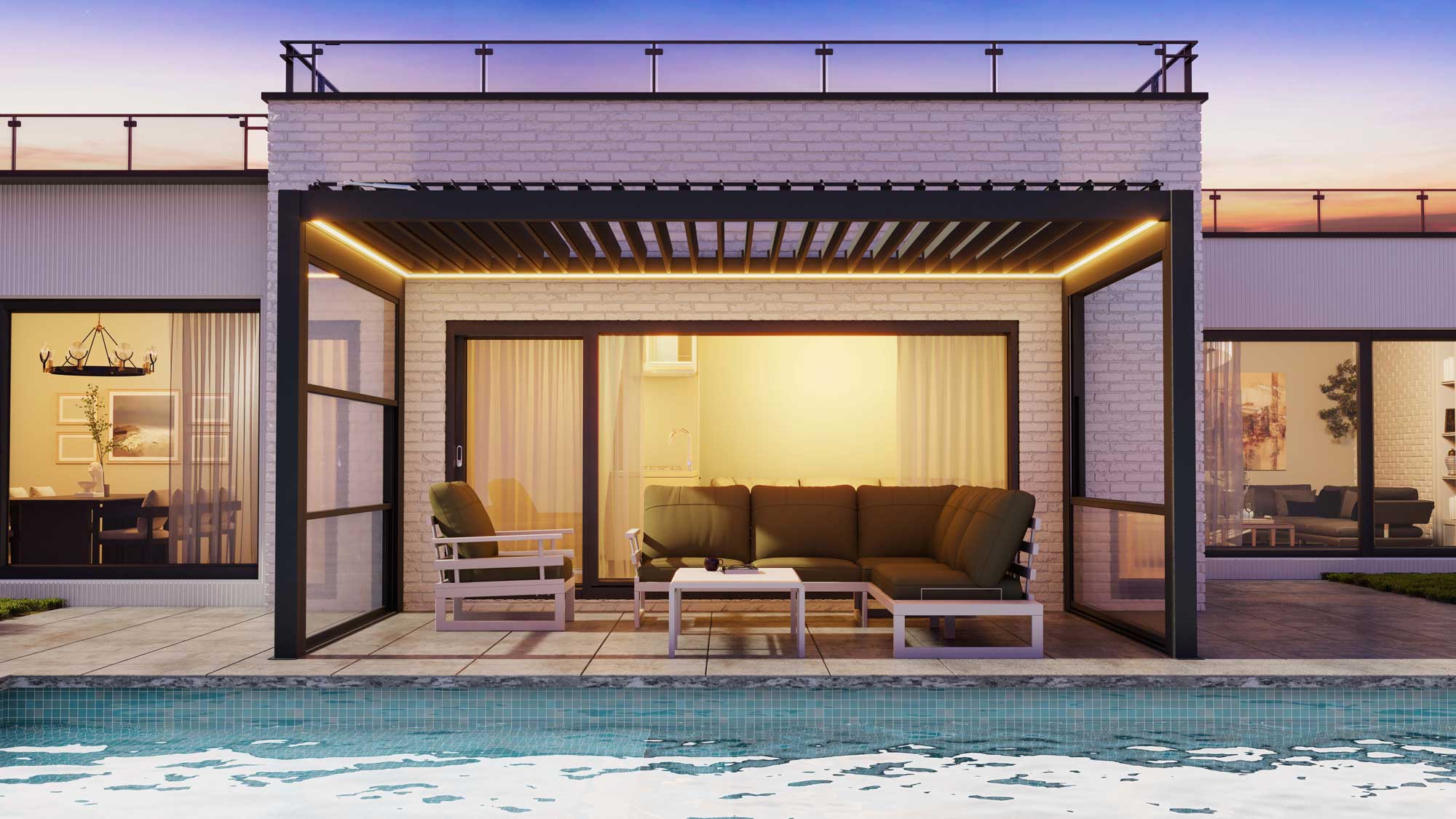 Bioklimatska pergola pruža udobno mesto za boravak u svim godišnjim dobima, jer se njena upotrebljivost i izgled mogu prilagoditi spoljnim uticajima. Omogućava zatvaranje bočnih strana ZipScreen platnima koje pružaju hlad po sunčanom vremenu, integraciju zaštitnih mreža protiv insekata koje vas štite od ulaska neželjenih insekata, a po hladnom ili kišnom vremenu, pergola se može zatvoriti staklenim zidovima.